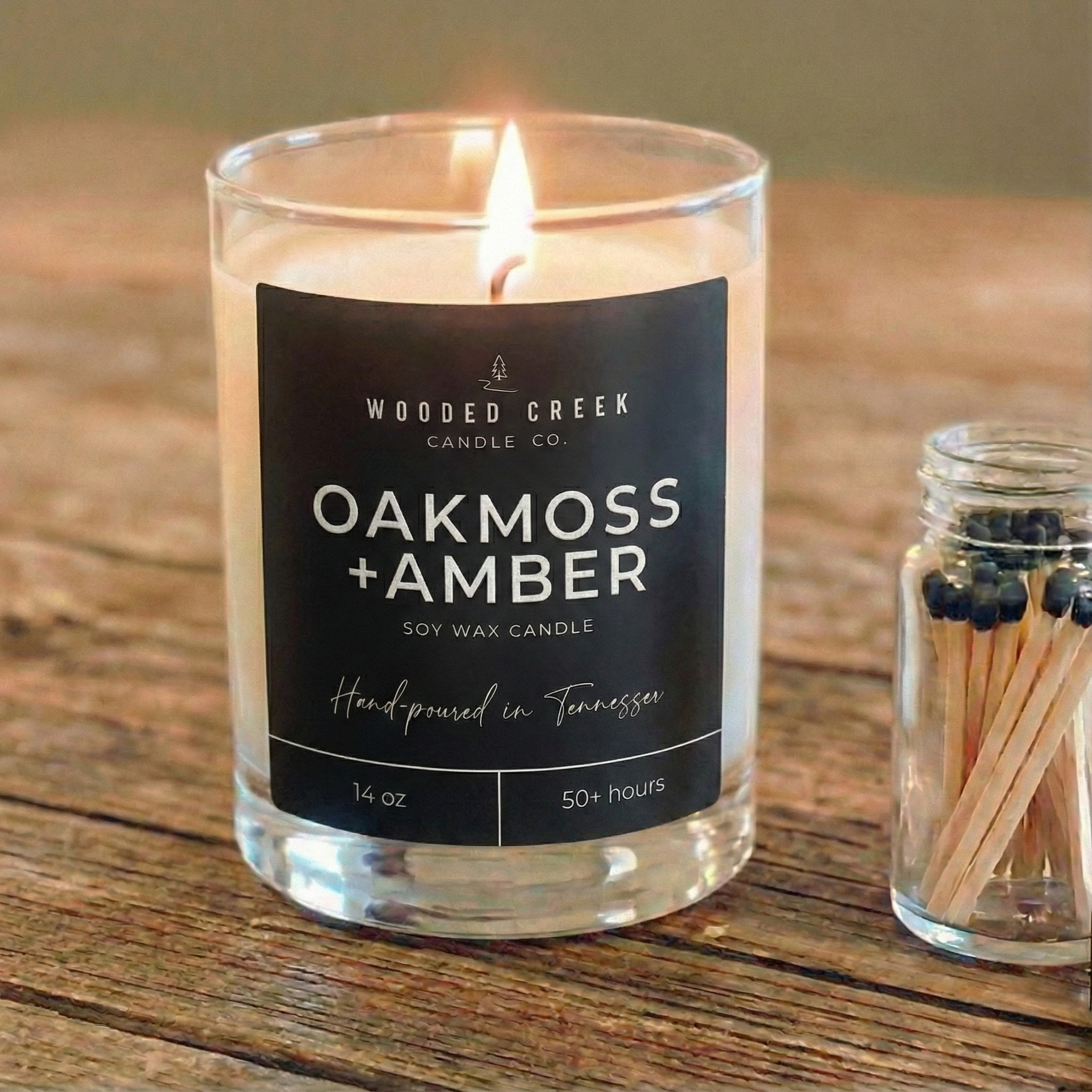 Our best-selling Oakmoss + Amber candle is the pure cozy vibes. Earthy and rich with a warm, slightly woodsy finish, this scent strikes the perfect balance of fresh and inviting. It's like a stroll through a mossy forest, but way comfier.